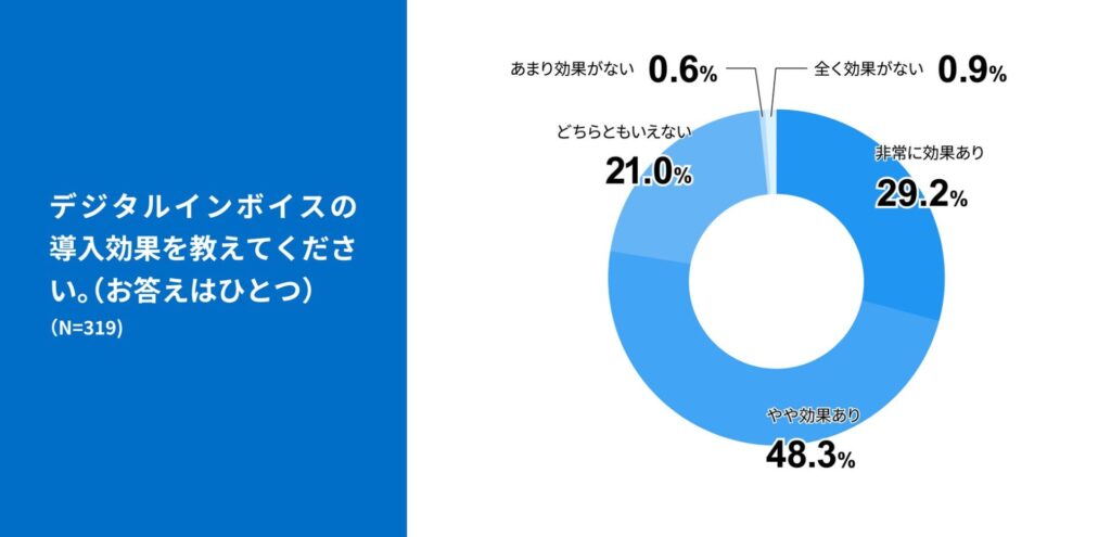一方、デジタルインボイス(Peppol等の構造化データ)を導入している事業者では、約77%が「導入効果を実感している」と回答しており、PDF化とデータ連携型のデジタル化との間に、明確な効果差が存在することが示されています。