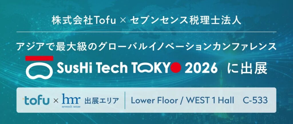 セブンセンス税理士法人(本社:東京都台東区、代表:徐 瑛義、PKFネットワーク加盟)は、株式会社Tofu(本社:東京都渋谷区、代表取締役:サマン・ヘーラト)とのパートナーシップのもと、2026年4月27日(月)〜29日(水・祝)に東京ビッグサイトで開催される「SusHi Tech Tokyo 2026」に出展いたします。